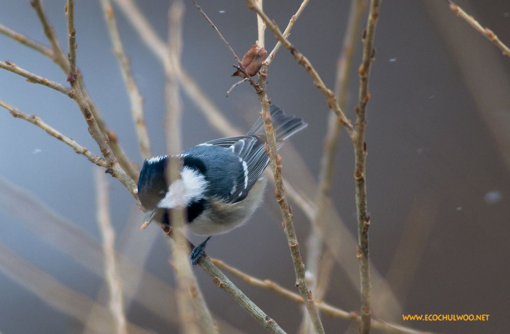 고향 다녀올 일이 있어 의림지에 들렸더니 박새, 쇠박새, 진박새 등 박새 3총사와 곤줄박이, 붉은머리오목눈이, 오목눈이, 노랑턱멧새, 쑥새, 딱새, 직박구리 등이 반갑게 맞아주네요. 용두산 산림욕장이라고 의림지 안쪽 골짜기를 공원화해 놓은 곳인데, 겨울이 되니 약숫물 뜨러 오는 사람들 말고는 인적이 없어 길 옆 개울쪽으로 산새들이 많이 모여있더군요. 일부러 산에 찾아갈 일 없이 날리는 눈발 구경하며 차 안에서 가까이 관찰할 수 있었답니다. 모처럼 산새들을 한 곳에서 만날 수 있어 좋더군요.