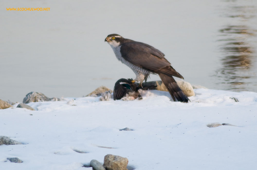 흰뺨검둥오리의 개체수가 많아져서인지 여러 맹금들이 자주 출현하고 있답니다.