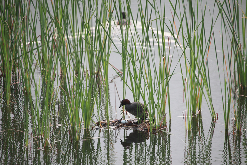 논병아리들도 알낳아 키우느라 고생하는군요..둥지가 좀 부실해보여요..