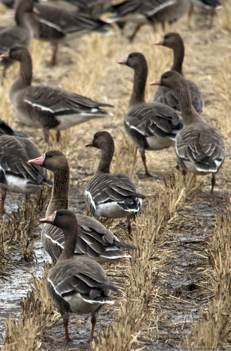 이제 떠날 날이 멀잖은 쇠기러기들이 여차리 들녘에서 한창 에너지를 비축하고 있습니다. 강화의 겨울 하늘과 마른 들녘에 풍성한 생명의 기운을 불어넣어 주던 가을의 전령사들이 곧 떠날 먼 길 준비에 여념이 없군요. 기러기 떠난 들녘은 또 얼마나 슬플까요.