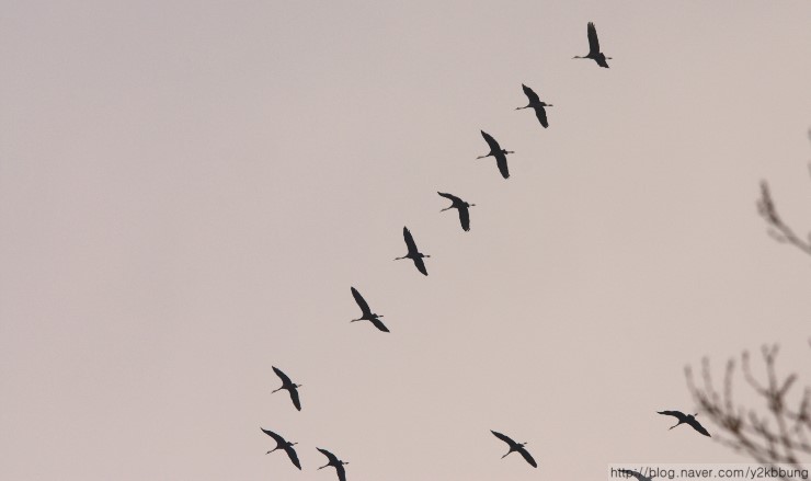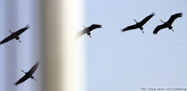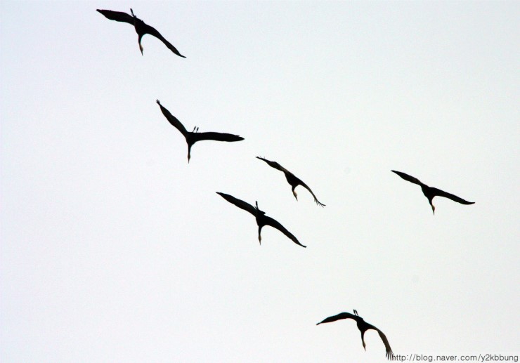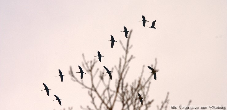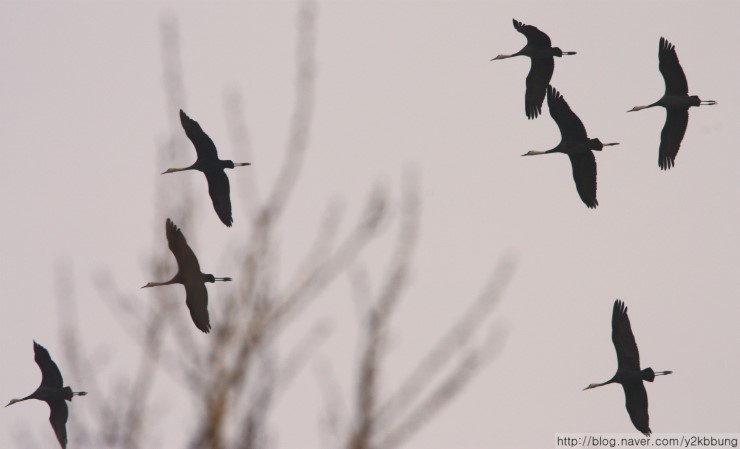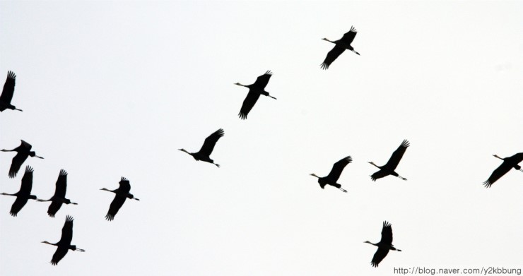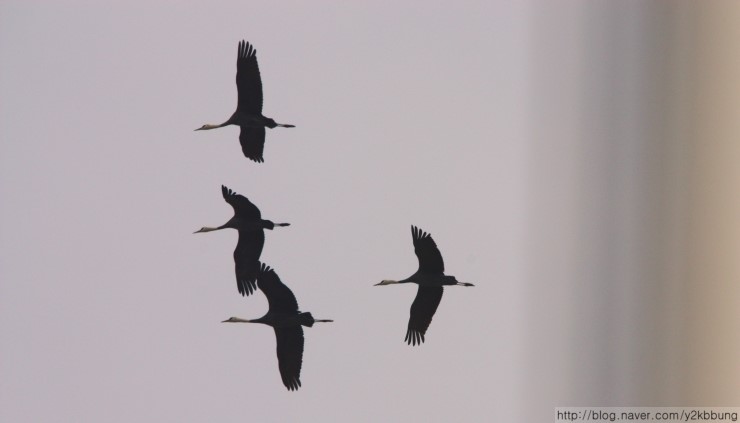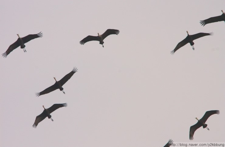 3월29일(목) 오전 11시경, 여차리 상공에서 북상 중인 흑두리미 60~70여 개체를 관찰했습니다. 처음엔 기러긴가 했는데 그 우아한 날갯짓이 다소 방정맞은 기러기와는 차이가 있더군요. 마치 우리와 마지막 인사를 나누려는 듯 3~4바퀴를 둥글게 선회하더니 산 너머로 사라졌습니다. 지난 26일, 일본 이즈미에서 3,600여 개체가 대거 북상했다는 소식을 들었는데, 그 마지막 무리가 아닌가 싶네요. 어쨌건, 강화를 거쳐가는 흑두루미들의 무사한 귀환을 빕니다.