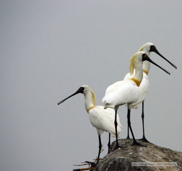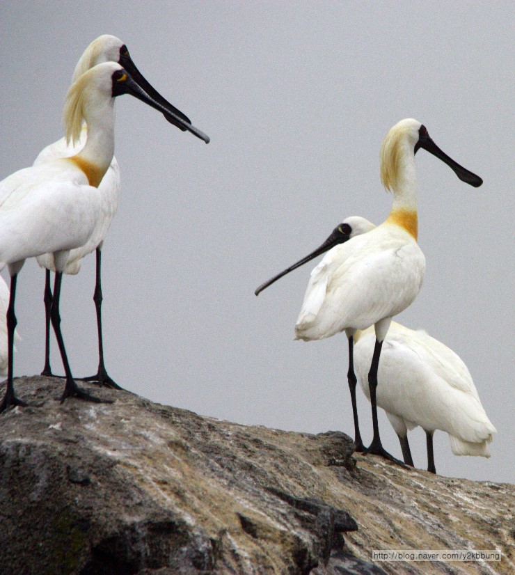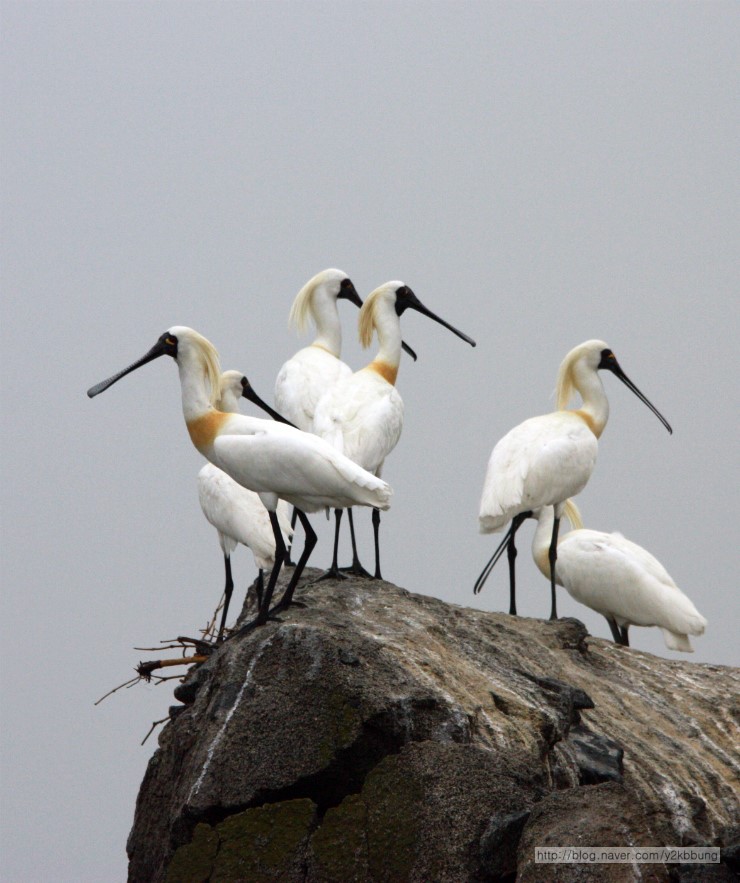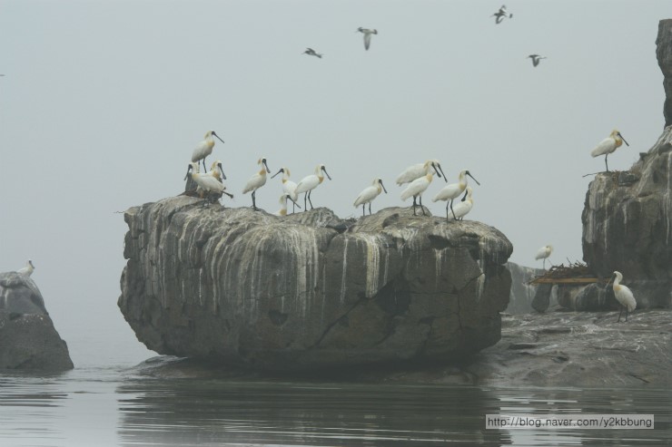 강화도 각시바위에 저어새가 40여개체 자리를 잡았군요. 사이에 노랑부리저어새도 3~4개체가 있군요.