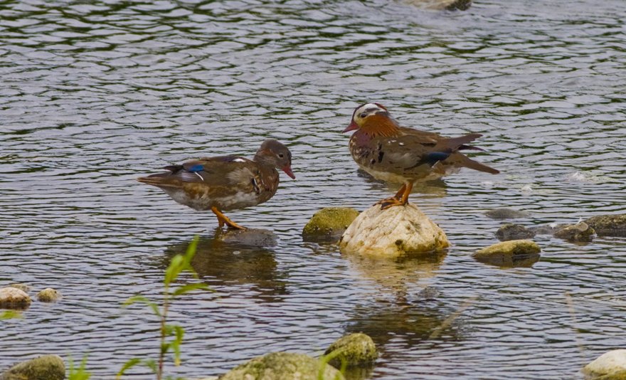 원앙 한쌍이 현재 한참 깃 갈이 중 이랍니다