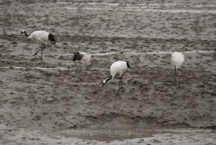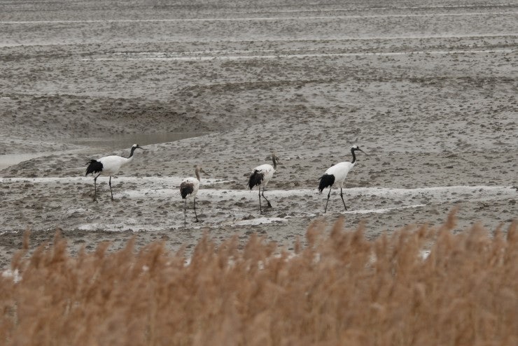 지난주 폭설이 내리기 직전 운좋게 찍은 동검도 두루미 가족입니다.