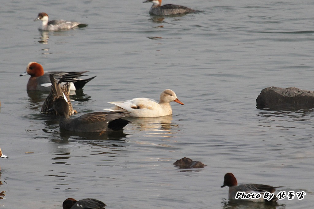 알락오리 암컷(백색형 개체, 알비노)