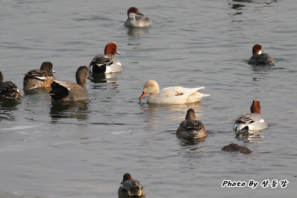 금호강 탐조중에 만난 알락오리 암컷 백색형 개체입니다.