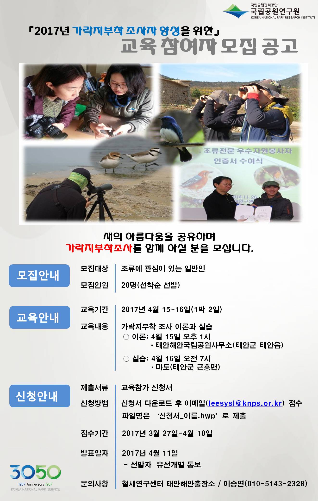 [철새연구센터] \"2017년 제1차 가락지부착 교육\"에 참여하세요~!
