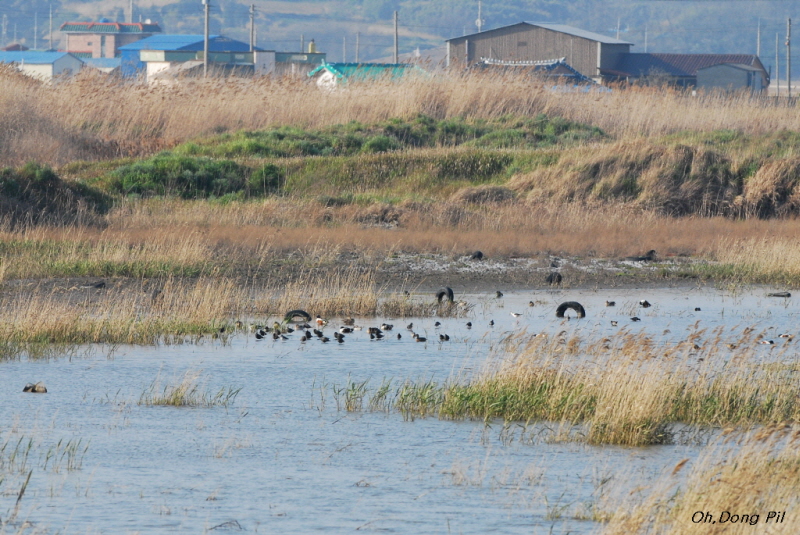 어두운 번식깃의 특징이 잘 나와 있어 멀리서도 잘 보입니다. . 학도요는 붉은발도요와 달리 물에 몸을 담그고 경우가 많습니다.