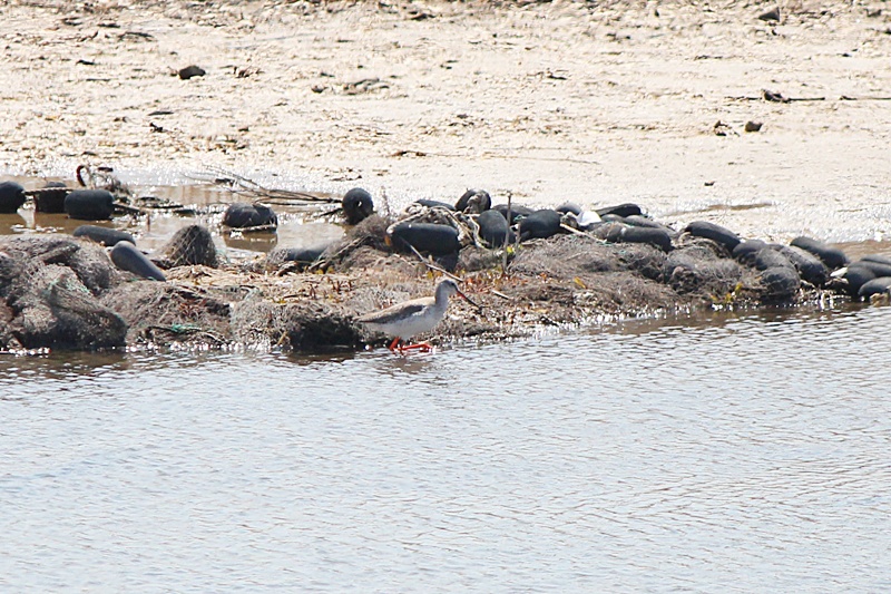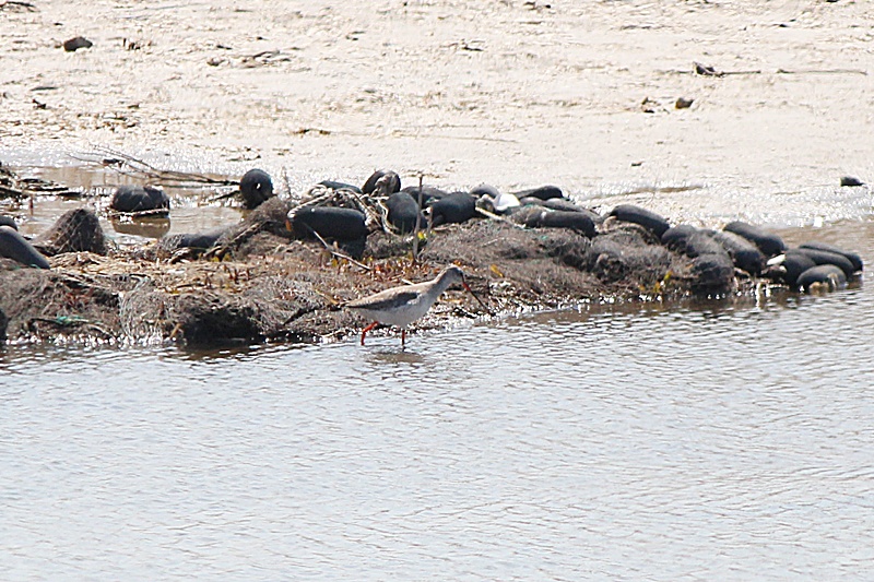 쌍안경으로 자세히 들여다보니 부리색깔(윗부리는 검고, 아랫부리는 기부쪽만 붉은)과