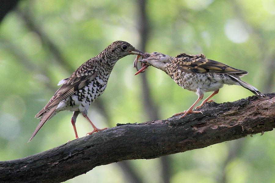 지렁이잡는 도사 호랑지빠귀가 새끼들에게 열심히 먹이를 주는 중입니다.