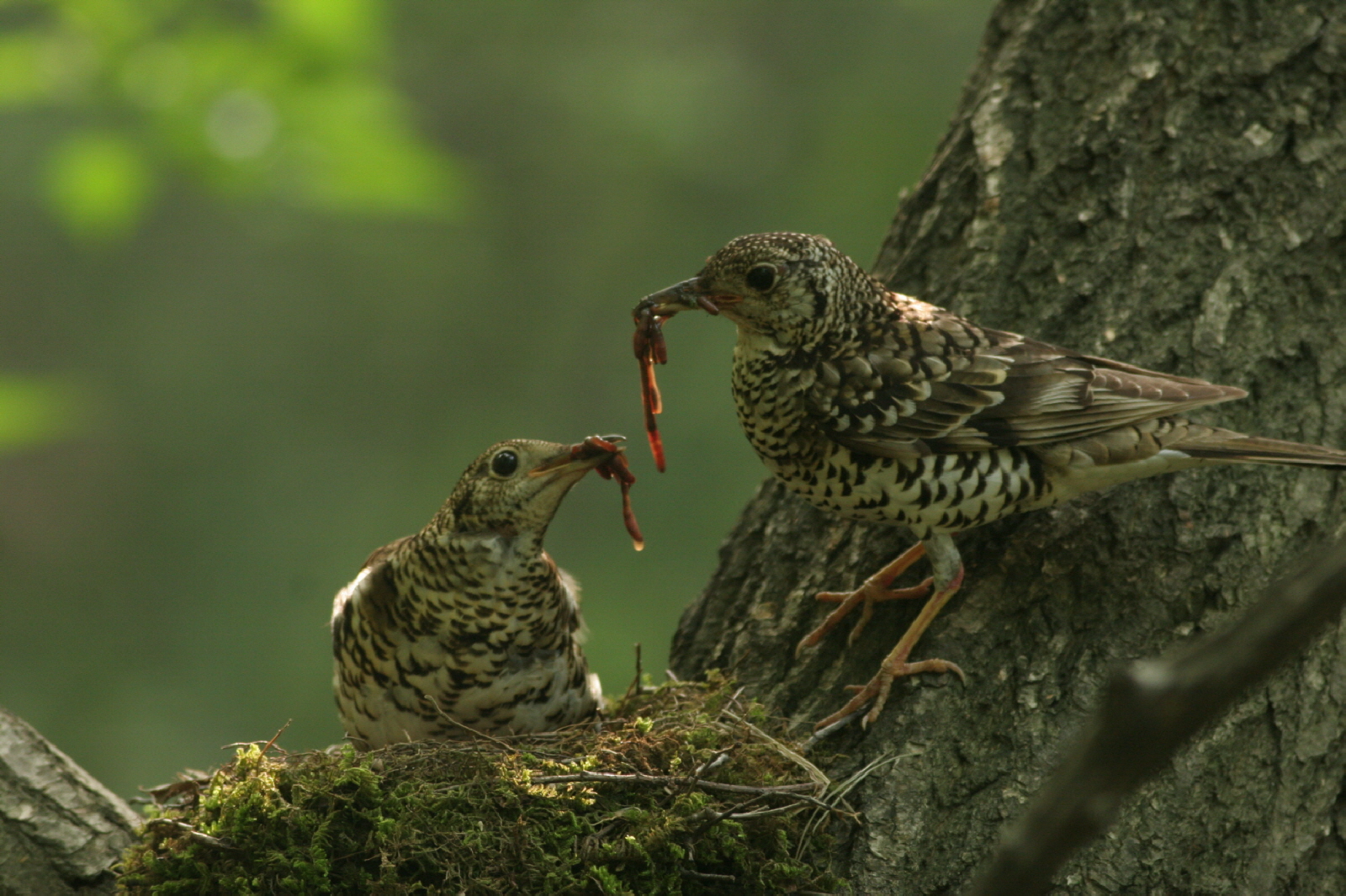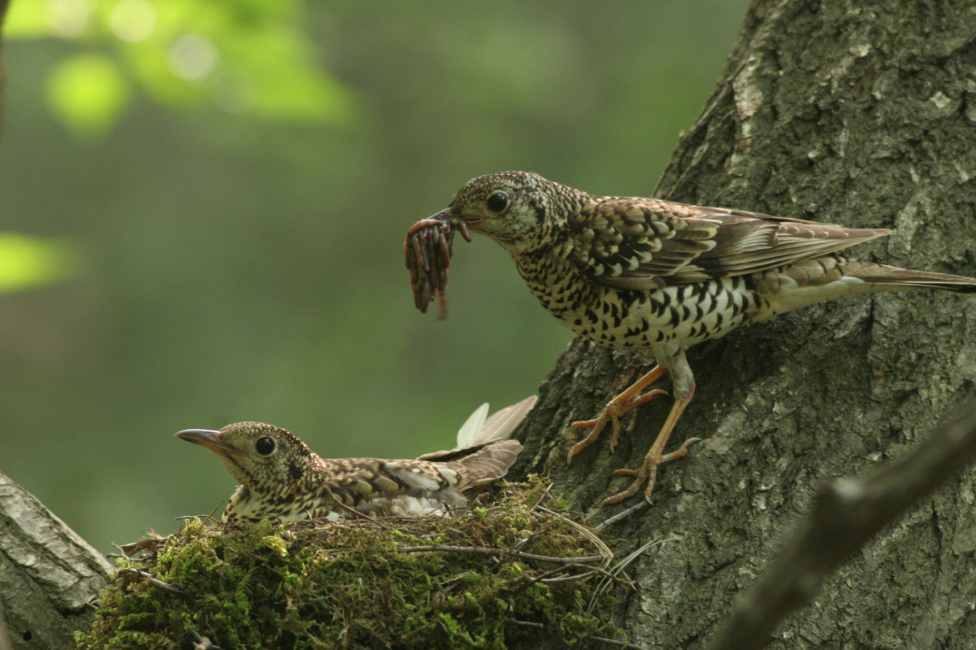 어제 부화한 둥지 사진입니다. 암컷이 먹이를 요구하는 콜사인을 했는데, 수컷이 너무 늦게 나타났습니다. 약간 삐친 듯한 표정을 짓다가 결국 수컷이 새끼들에게 먹이를 주도록 자리를 비워주고 있습니다.