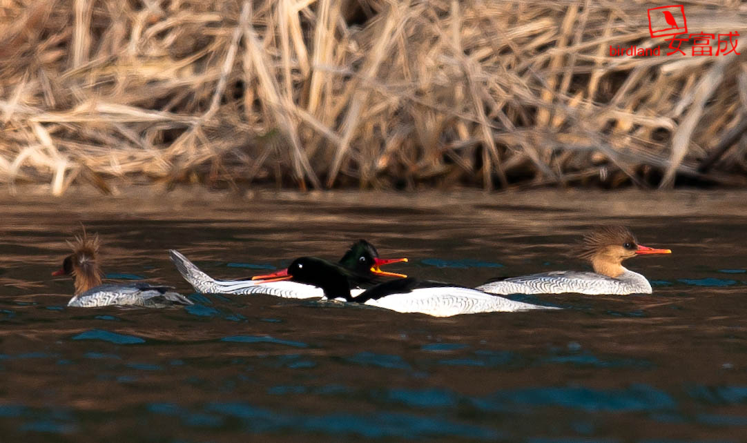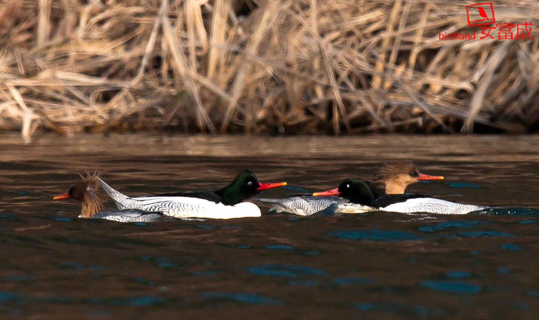 한사진에 4마리의 호사비오리는 색다른 느낌입니다. 멋진 모습입니다.
