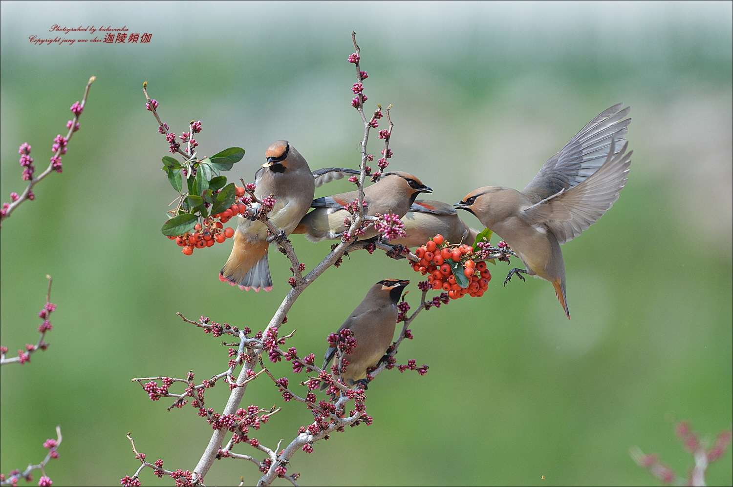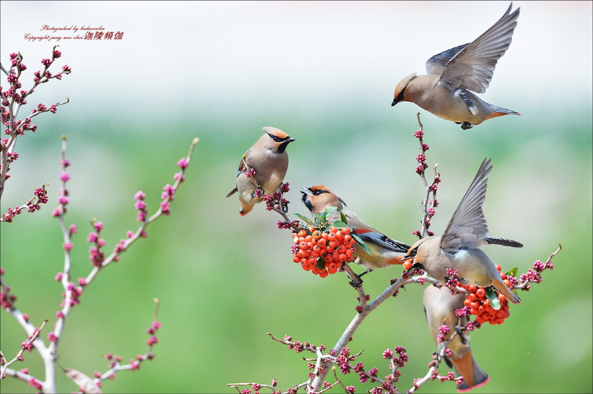 화사한 봄 홍여새 무리 참 보기 좋습니다.