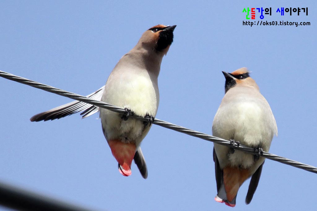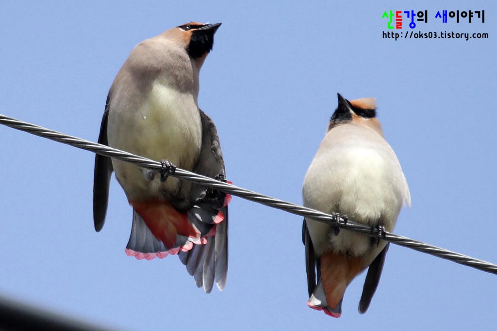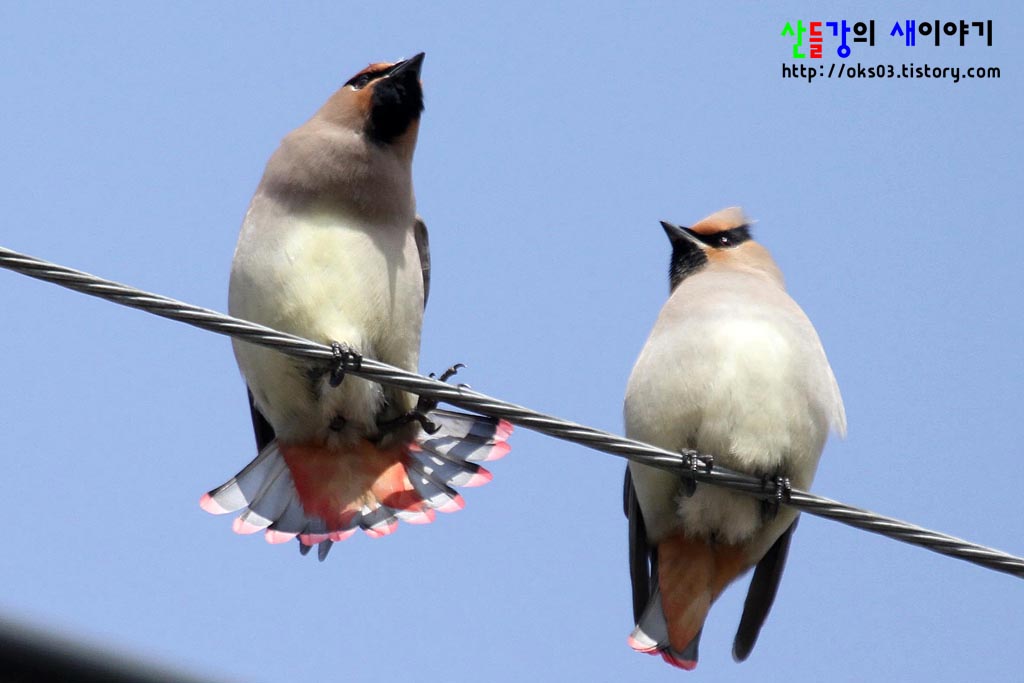 경북 구미에서 만난 홍여새... 총 28마리가 관찰되었으며, 전기줄 위에서 쉬고 있었습니다.