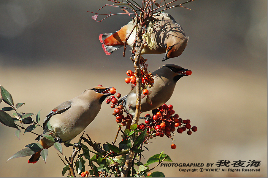홍여새*Bombycilla*japonica*Japanese*Waxwing