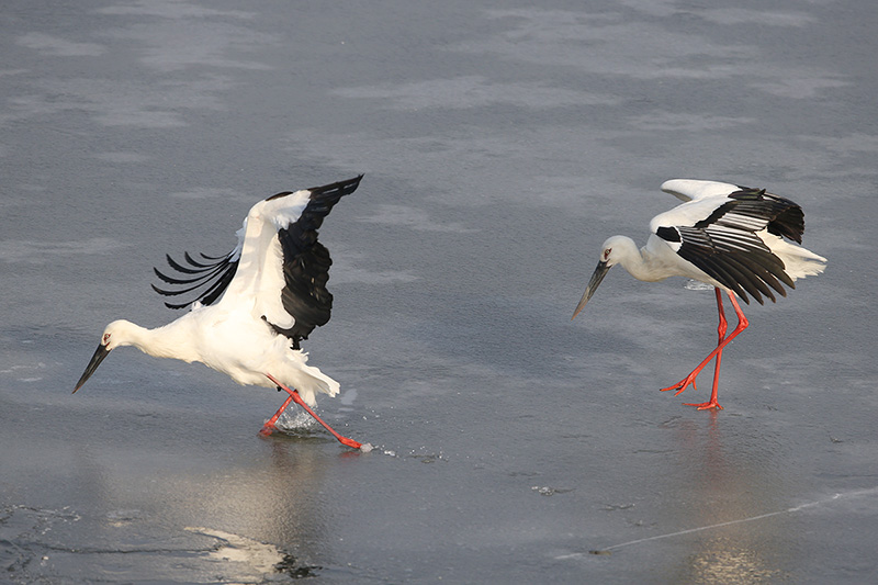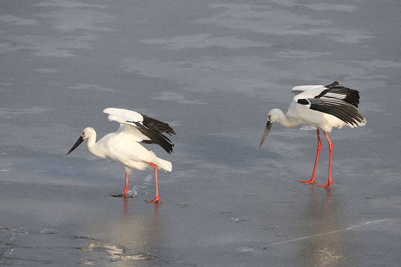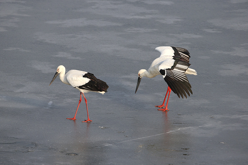 대백로, 왜가리등 다른 새들은 빠지는 일이 없던데 황새는 워낙 크니 얼음이 깨지고 말았습니다.