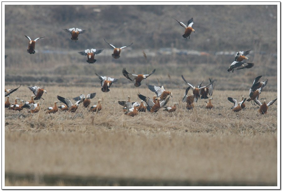 재두루미 촬영중에 나타난 황오리떼....