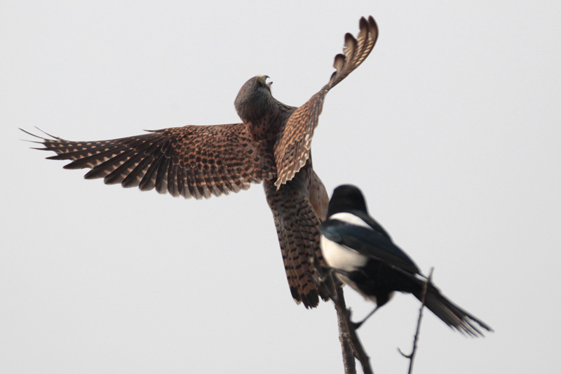 황조롱이의 조용한 사냥터에 간이매점이 생기고 먹거리가 많이 생기자 까치가 터를 빼앗으려 합니다.