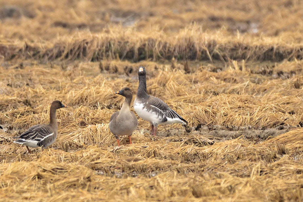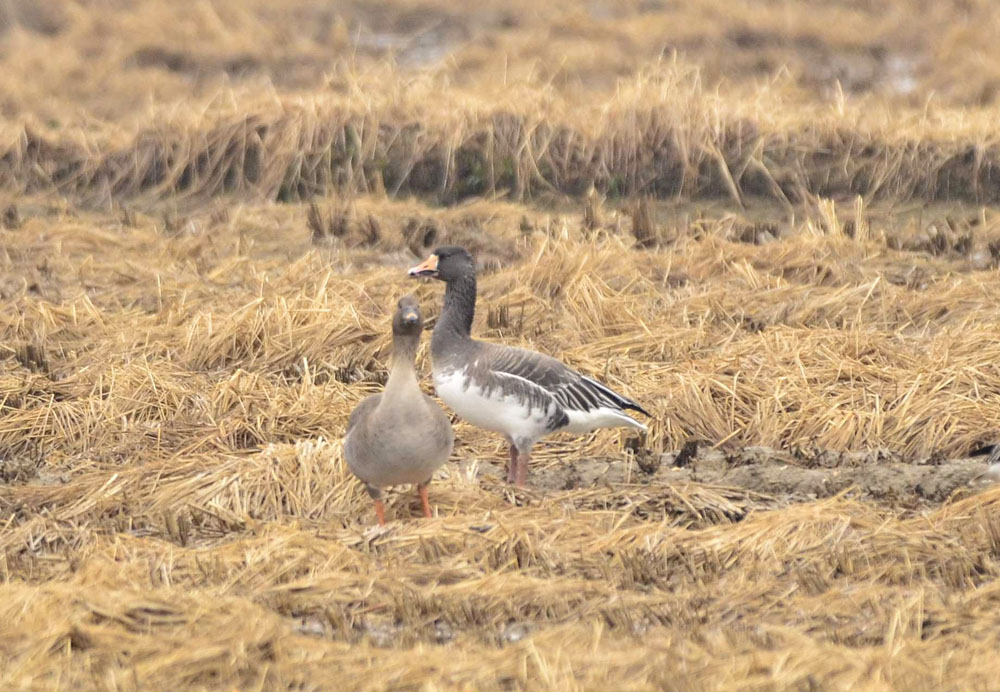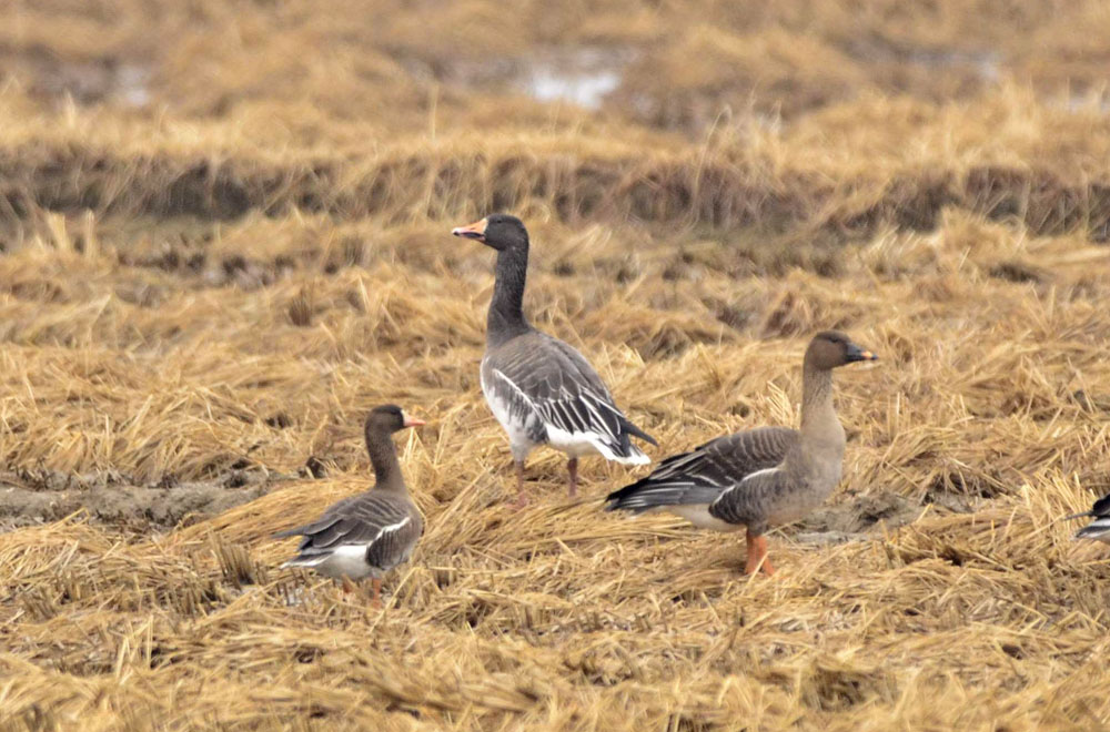 전형적인 회색기러기와 약간의 차이가 납니다.
