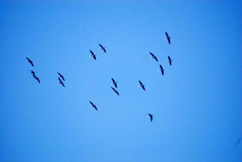 4시 20분경 33개체가 역시 예성강쪽에서 날아왔습니다. 이 들은 평화전망대가 있는 산들과 서쪽 해안 사이의 평야지대에 쉬고 싶었던것 같습니다.
