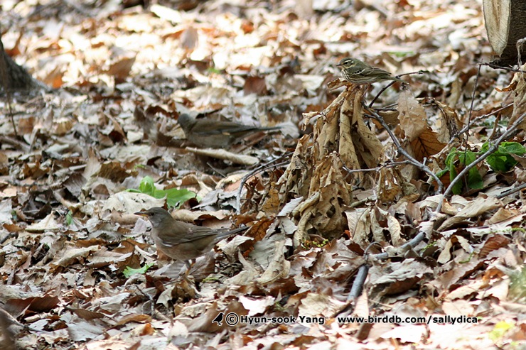 흰배지빠귀 두마리와 힝둥새 한마리..